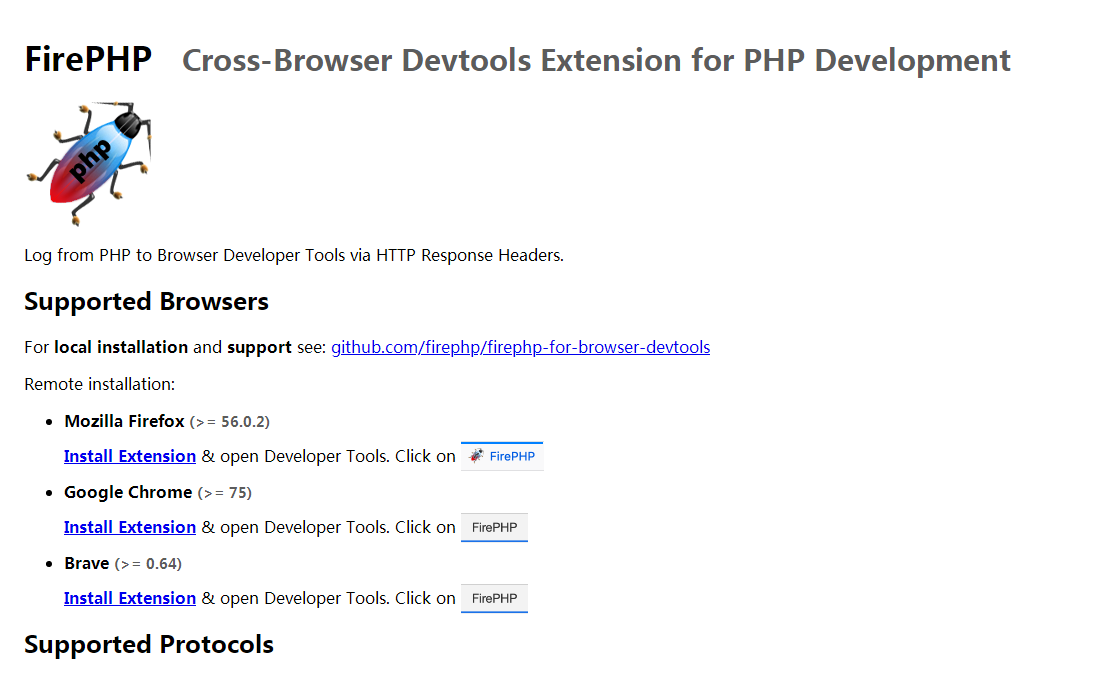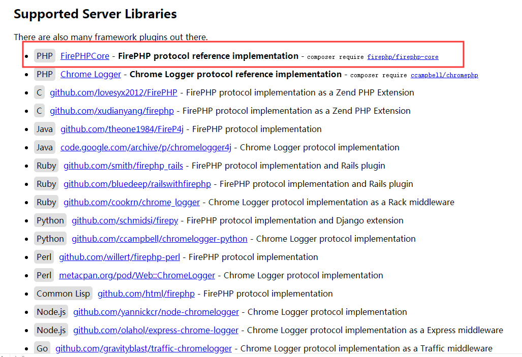 仅仅安装好FirePHP浏览器端的插件是不够的,我们还需要安装它的服务端,FirePHP类库下载地址:http://www.firephp.org
