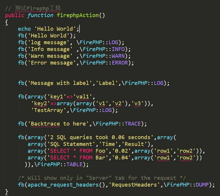 是不是非常方便,通过FirePHP,我们就不需要每次调试信息用echo,print_r或者日志的形式输出了,可以更方便大家调试,提高我们的开发效率。