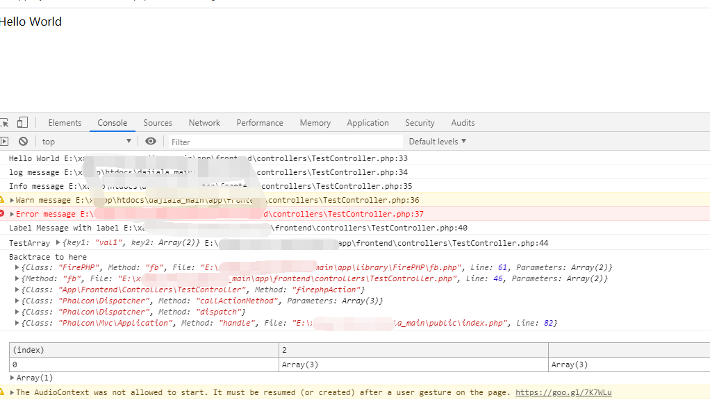 fb(array('key1'=>'val1', 'key2'=>array(array('v1','v2'),'v3')), 'TestArray',\FirePHP::LOG);